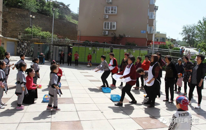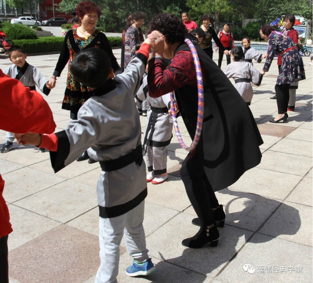 在春意盎然的五月里,孩子们走进社区,亲近长辈,和李家夼社区的奶奶们手拉手,心连心,伴着和煦的春风,在合作与陪伴中体验互动的乐趣。