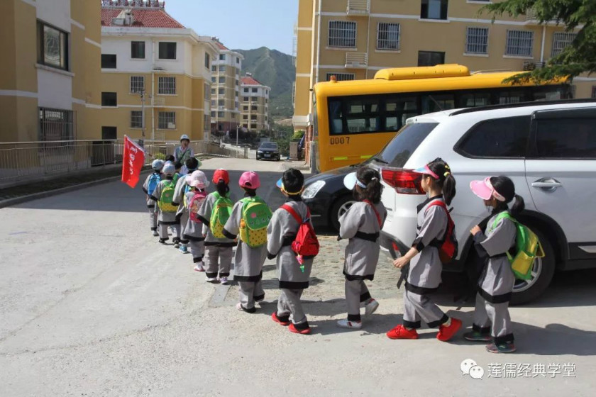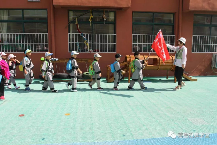早晨,闻着清新的空气,迎着和煦的春风。在老师的带领下孩子们排着整齐的队伍向着今天踏青的地点出发了!