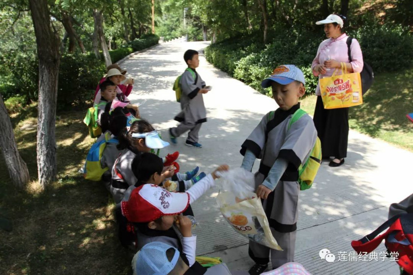 今天太阳有点大,孩子们玩累了,在老师的带领下孩子们坐下休息和伙伴们一起分享美食,并且把产生的垃圾带走,真棒!