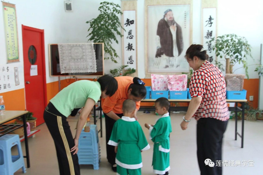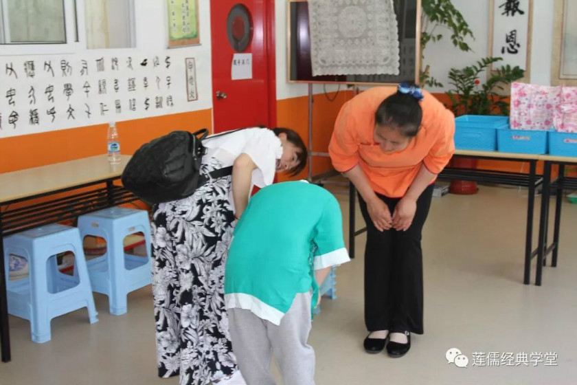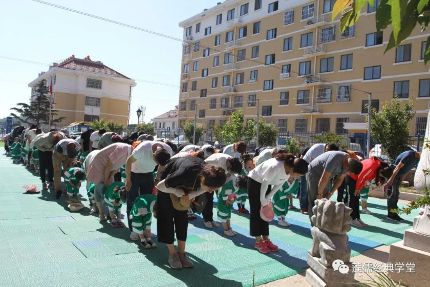 全场端身正义,向大成至圣先师孔老夫子行三鞠躬礼