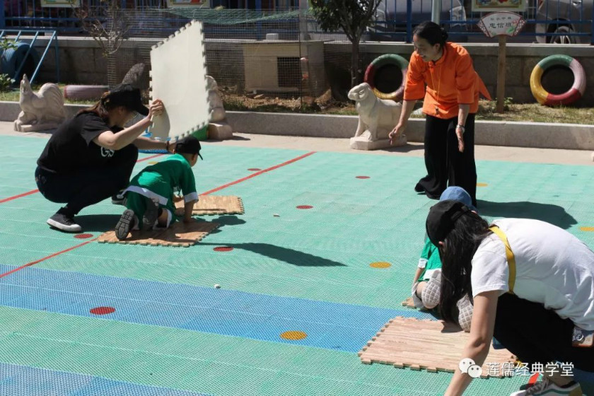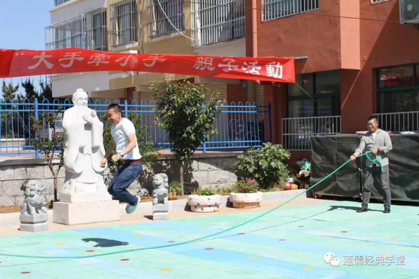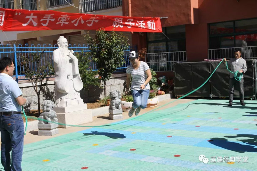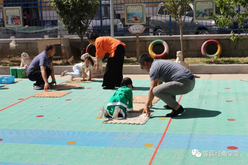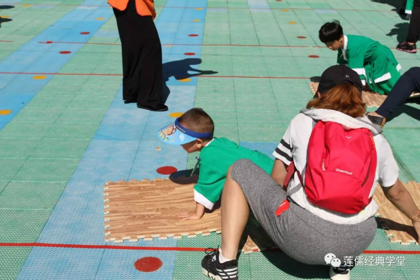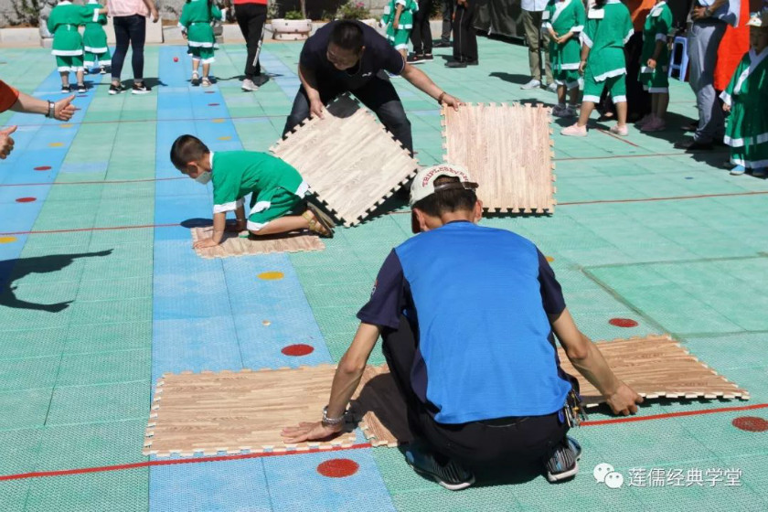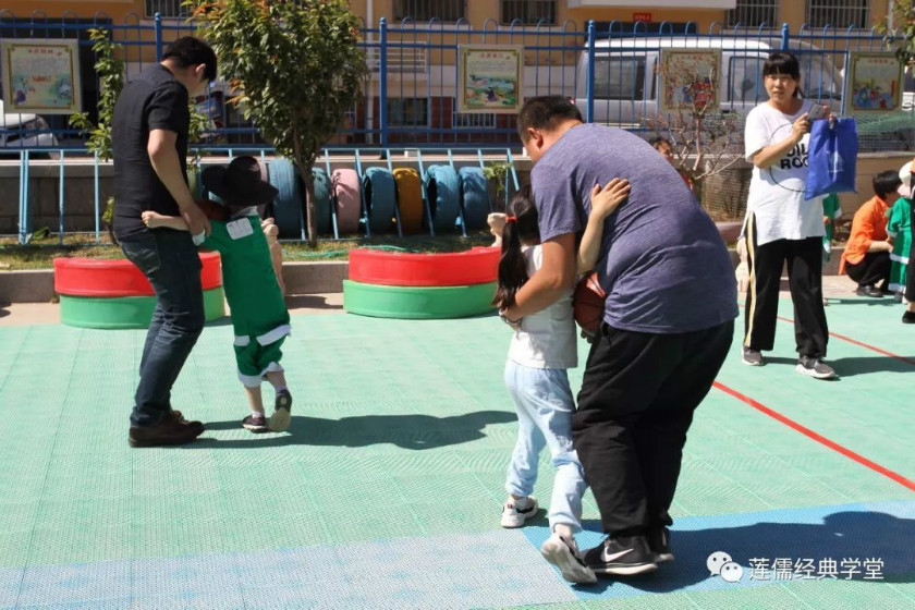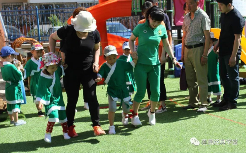 圣贤教育穿越千年时空,琅琅书声承续中华文明。金色年华里,我们延续传统文化,灿烂时光中,我们共育书香校园。光阴似箭,日月如梭。莲儒幼儿园又迎来了新一年的六一儿童节。为了增进家园之间的交流,提高孩子的运动兴趣和运动技能,培养孩子良好的身体素质,进一步建立家园共育的基本理念,我园举行了“大手牵小手”亲子体能活动。让我们与孩子一起手拉手,回到孩童时代!感受他们的童真童趣!让我们共同留住精彩瞬间,留下美好回忆!