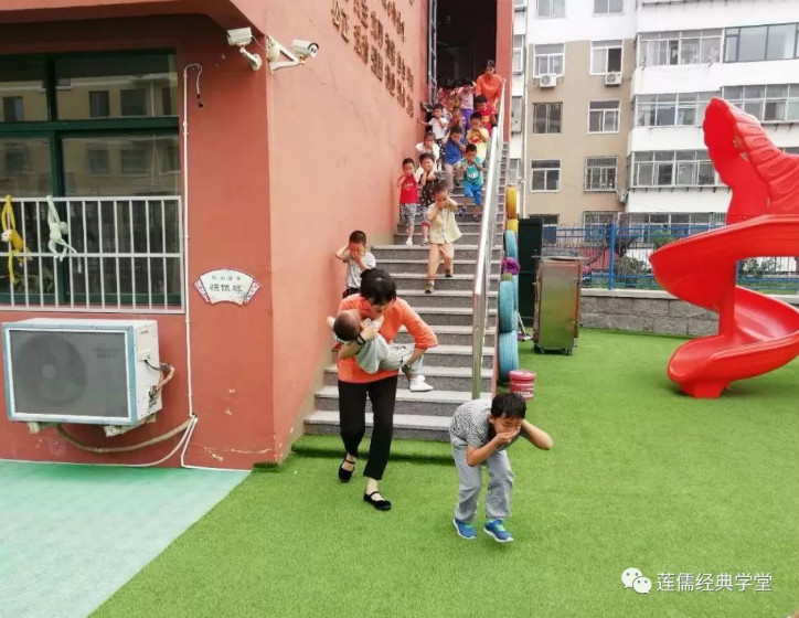 抢救组对教室进行排查,对没有疏散到安全地带的幼儿及时救助。