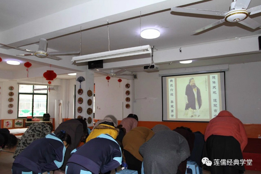 一、感恩古圣先贤护佑,全体向大成至圣先师孔老夫子行三鞠躬礼