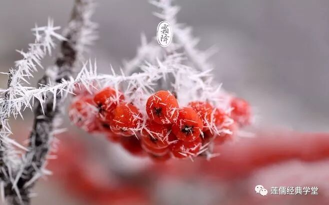 《月令七十二候集解》关于霜降说:九月中,气肃而凝,露结为霜矣。"霜降"表示天气逐渐变冷,露水凝结成霜。我国古代将霜降分为三候:一候豺乃祭兽;二候草木黄落;三候蜇虫咸俯。