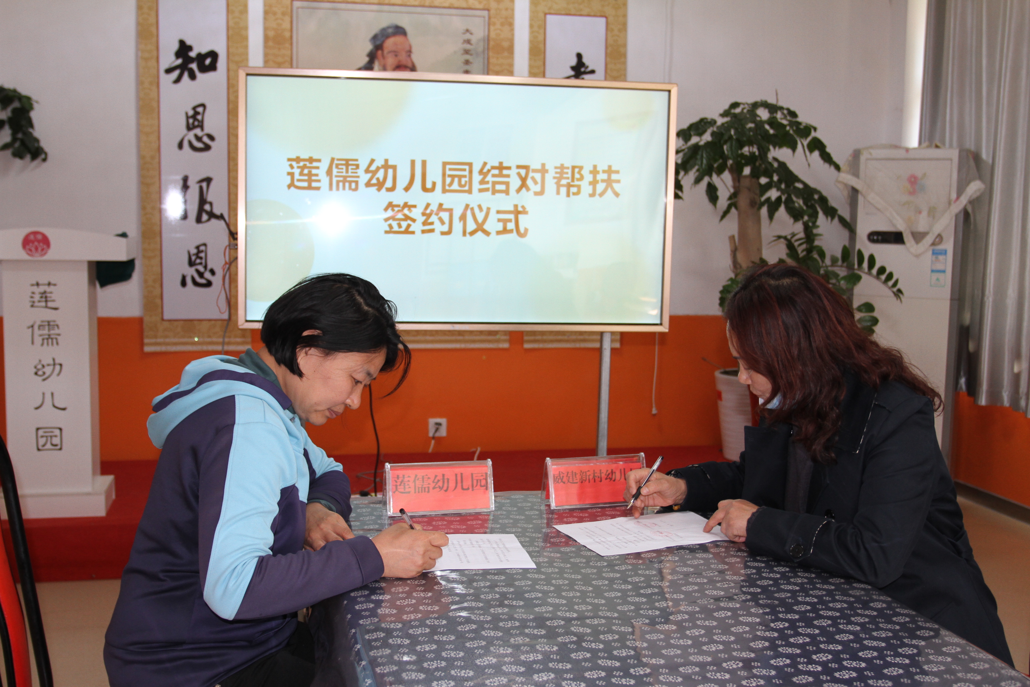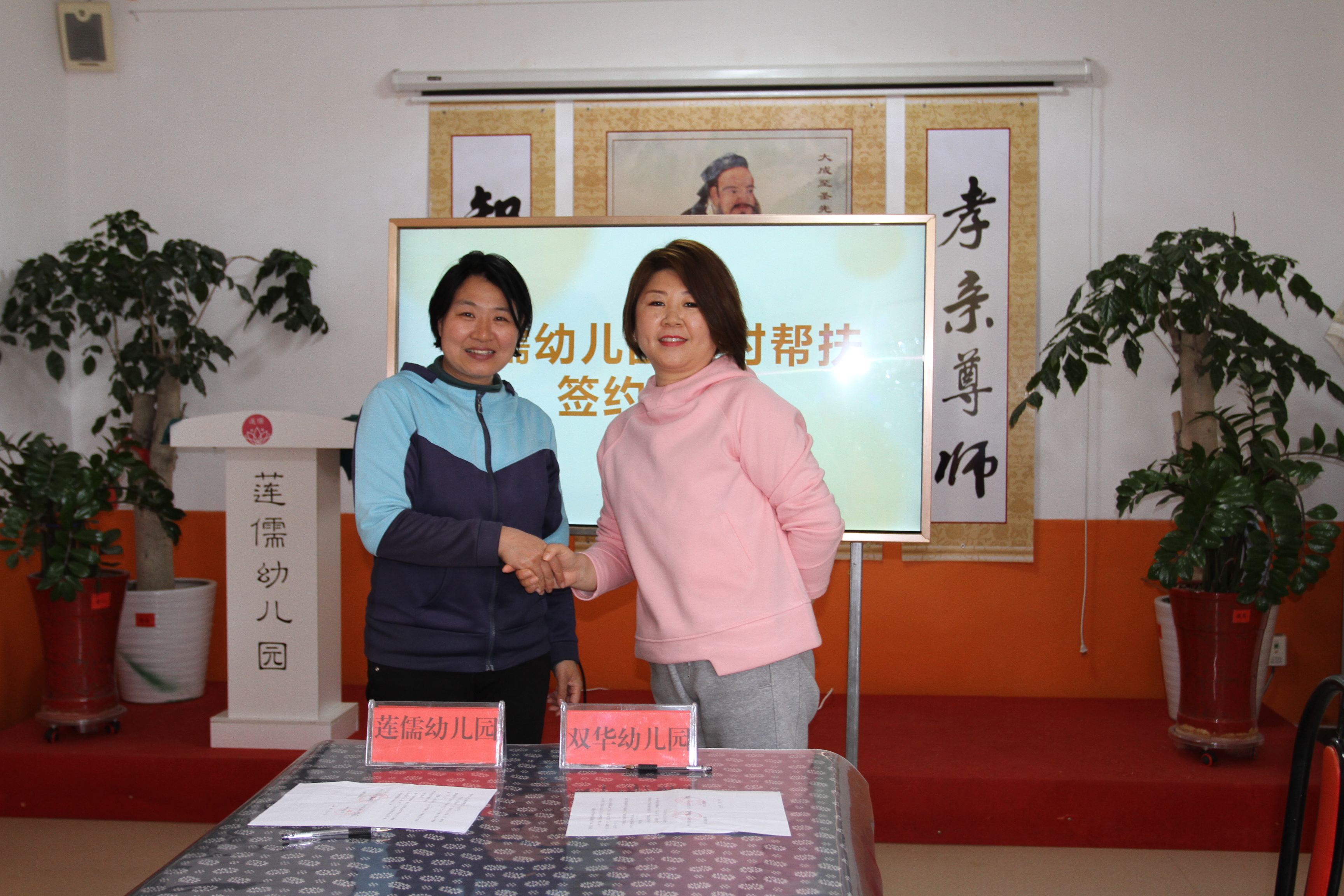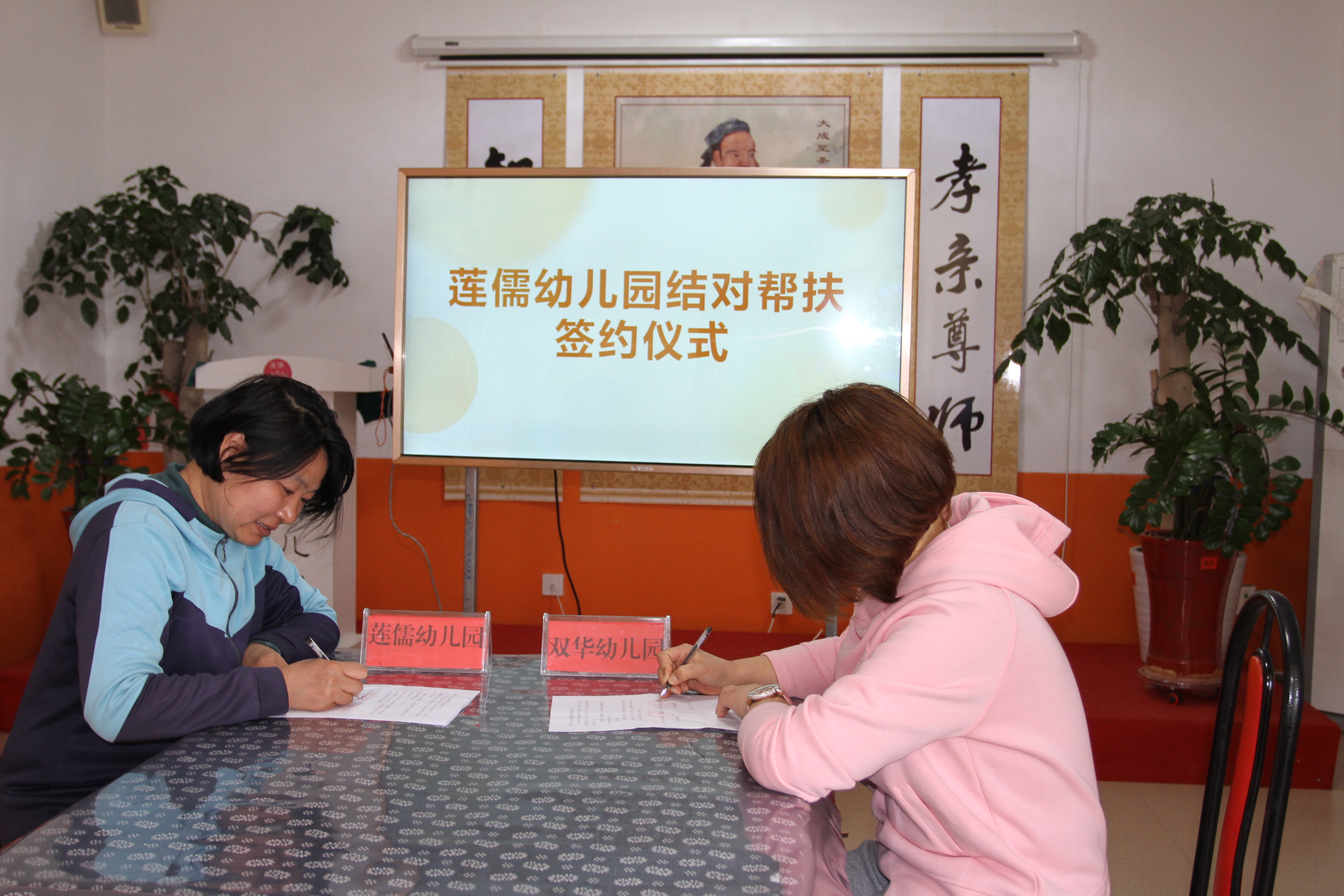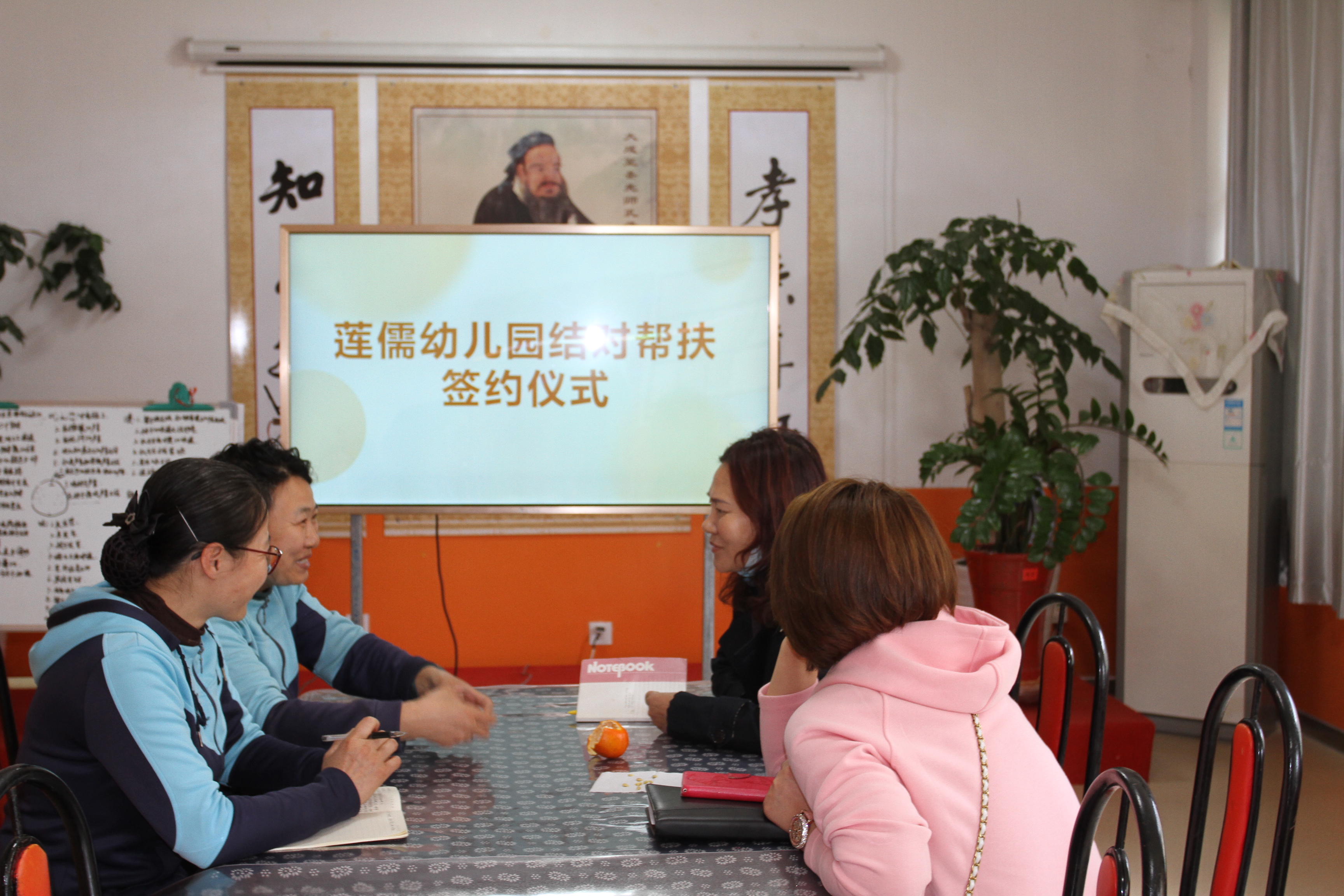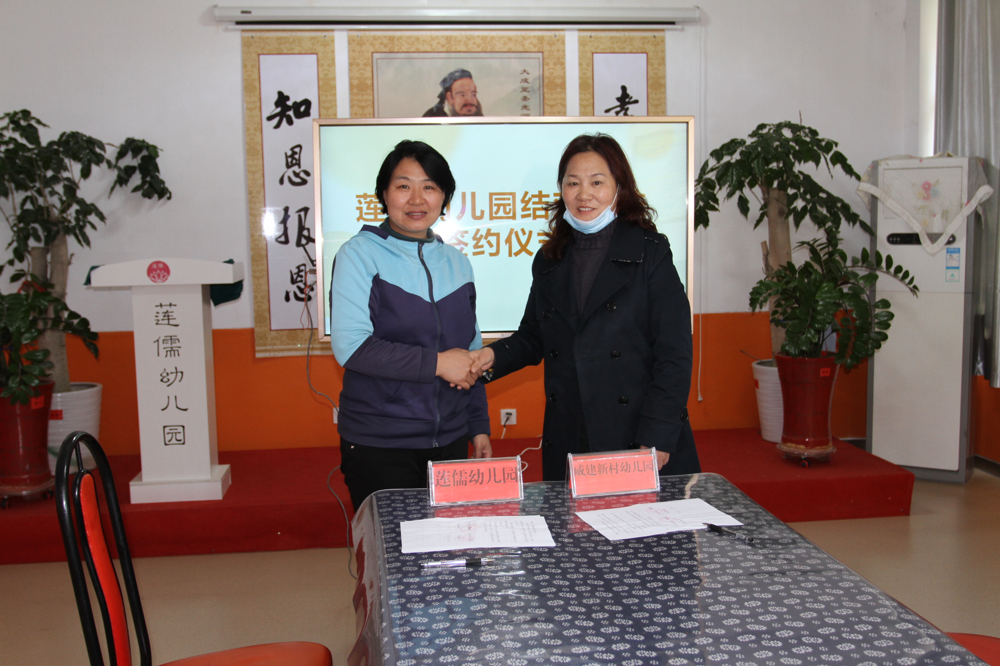 教研后,我园与两位园长互相交流了想法和收获,写下携手并进的承诺,手拉手建立了友好合作关系。